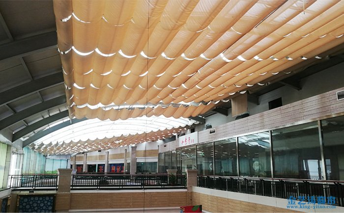 FCS天棚簾效果:天棚簾完全展開后,面料呈現(xiàn)均勻的波浪效果,收起時(shí)拉到一側(cè)。